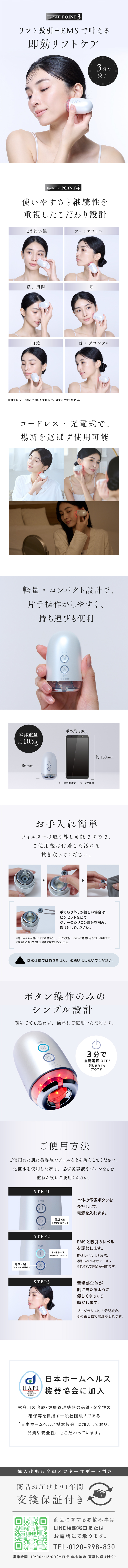 材質 [本体]ABS樹脂、ABS・PC樹脂(電極部:クロムメッキ)、シリコーン[カバー]ポリカーボネート樹脂